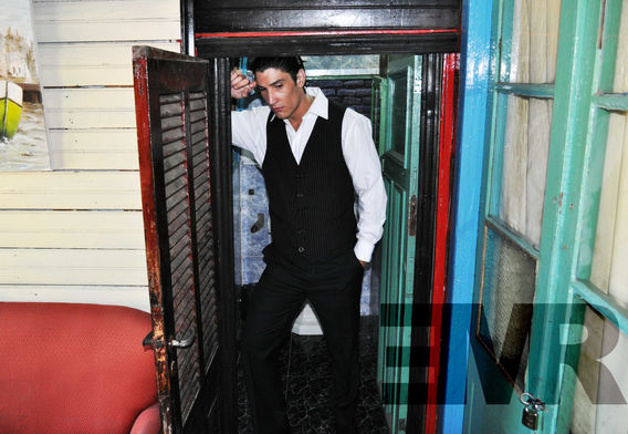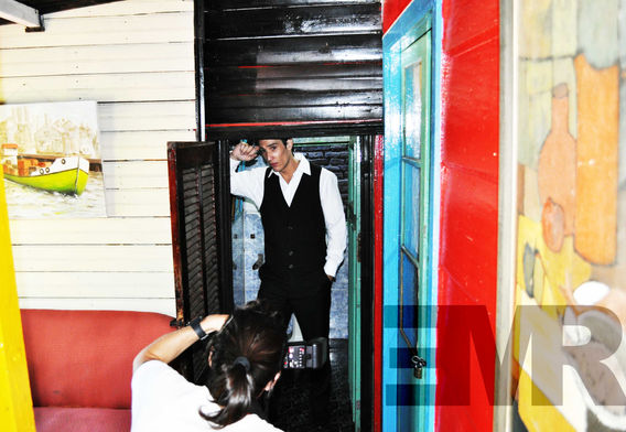 Backstage de producción de fotos con locación en La Boca, Buenos Aires. La tematica es de tango pero con colores vivos y saturados.